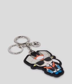 Ce porte-clés joue la carte de la fantaisie avec son motif Ikonik Karl aux allures de super-héros futuriste. À la fois gaie et amusante, cette breloque est confectionnée en cuir de qualité supérieure et est munie de deux attaches pour une fonctionnalité décuplée.