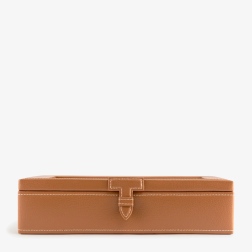 Coffret 10 montres en cuir recyclé (95% de peaux et de surplus de cuir +5 % de latex) et doublure velours. Marquage ton sur ton et fermoir en T signature.