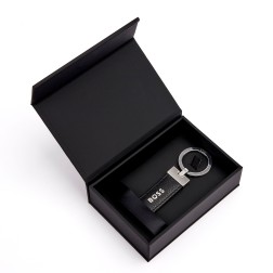 Ce porte-clés élégant et intemporel est confectionné dans le même cuir pleine fleur mat que la ligne de petite maroquinerie éponyme. Les métaux chromés sont magnifiquement finis, avec le logo BOSS gravé sur le porte-clés. Il est signé d’une plaque aux lettres chromée BOSS.