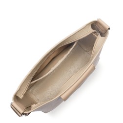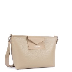 Ce sac trotteur est confectionné en polychlorure de vinyle garni de refente de cuir de vachette. Il comporte un emplacement pour cartes frontale à pression, une poche arrière extérieure zippé ainsi qu'une poche intérieure zippée. Il se porte à l'épaule ou croisé.