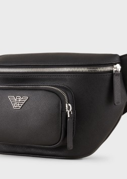 Les produits en cuir régénéré sont issus d’un processus écologique et durable permettant de réutiliser des chutes de cuir qui sont traitées et assemblées sans colle et dans un souci d’économies d’eau. Gaspillant moins de ressources, cette matière est écologique et à faible impact environnemental, mais conserve les mêmes qualités que le cuir véritable, à la vue comme au toucher. Une matière qui répond aux exigences de labellisation RCS (Recycle Claim Standard). Une collection d’accessoires créée pour répondre aux besoins de l’homme Emporio Armani qui exige une parfaite cohésion entre style et tenues de travail, grâce à un design épuré et séduisant caractérisé par le logo métallique en forme d’aigle. Pratique et élégant, tout en sobriété, ce sac banane se démarque par son style épuré, typique d’Emporio Armani. La fermeture zippée et la poche extérieure en font un accessoire confortable indispensable au quotidien.
