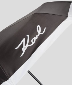 Le parapluie K/Signature de KARL LAGERFELD vous assure de rester au sec avec style. Une bordure blanche contrastante et le logo KARL Signature sur les bords extérieurs ajoutent une touche de sophistication aux jours de pluie, tandis que l'étui protecteur assure un rangement pratique.