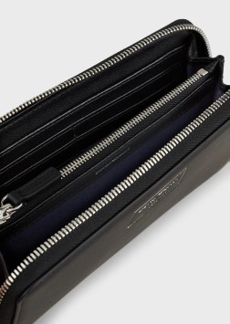 Le sac n’est pas le seul à devoir être unique et représentatif de la personnalité de celle qui le porte, il en va de même pour son contenu : Emporio Armani a toujours le modèle qu’il vous faut. Portefeuille entièrement zippé en cuir écologique exclusif : un cuir qui conserve les caractéristiques classiques du cuir véritable et fait de l’accessoire un produit écologique et durable, tanné avec un procédé sans métal et doté de la certification LWG Gold. Article rehaussé d’une étiquette en cuir ton sur ton avec logo. Un accessoire exclusif à assortir avec votre MyEA bag.