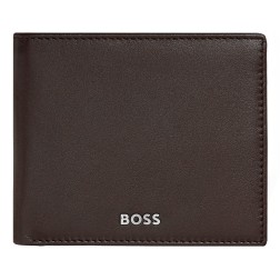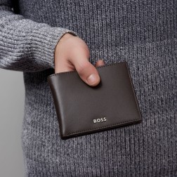 Ce portefeuille trifold doté d'une pochette à monnaie est fabriqué en cuir lisse noir de première qualité soigneusement sélectionné. Il est orné d'une luxueuse plaque de signature BOSS chromée et d'une doublure intérieure monogrammée. Le portefeuille comprend : 2 compartiments à monnaie 8 emplacements pour cartes 3 compartiments latéraux 1 fente pour la monnaie Conformément à l'ADN de la marque BOSS, il est simple, fonctionnel, élégant et minimal.
