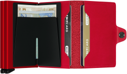 Le Twinwallet est constitué de 2 Cardprotectors dans une housse en cuir avec fermeture à pression. Il vous permet de transporter en toute sécurité de 8 à 12 cartes. L'intérieur offre de l'espace pour des cartes supplémentaires, des billets, des bons, des cartes de visite.
