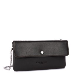 Cette double pochette est confectionnée de cuir de vachette pleine fleur. Elle comporte un rabat à pression comme fermoir, une poche arrière extérieure zippée, une poche extérieure simple ainsi qu'une poche intérieure simple. Elle se porte à l'épaule ou croisé.