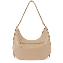 Ce sac hobo est confectionné de cuir de vachette grainé. Il possède une poche principale simple zippée ainsi que deux poches intérieures de chaque côté, une simple et une zippée. Ce sac se porte à l'épaule.