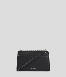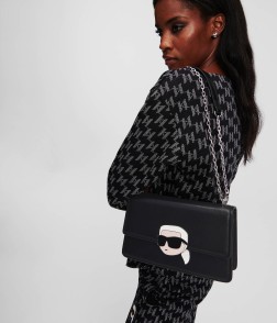 Ajoutez une touche de sophistication fantaisie à vos looks de jour comme de soirée avec ce sac porté épaule en cuir lisse. Ce modèle élégant est rehaussé d'une serrure Ikonik Karl unique au niveau de la fermeture et d'une bandoulière en cuir et chaîne rock.