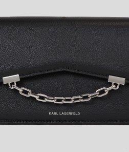 Adoptez une élégance sobre avec le sac bandoulière en cuir grainé K/Seven. L'anse supérieure et la bandoulière réglable offrent un style polyvalent, tandis que la chaîne ornée de l'emblématique logo KARL LAGERFELD respire la sophistication. Idéal pour une transition fluide de la journée à la soirée.