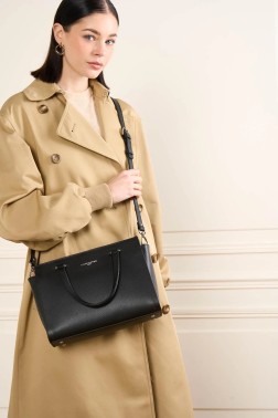Ce sac à main est confectionné de refente de cuir de vachette grainé. Il comporte une grande poche principale et une poche extérieure zippée. Il se porte à la main, croisé ou à l'épaule.