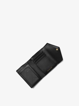 Complément parfait de votre sac à main de tous les jours, le portefeuille à trois volets Carmen allie fonctionnalité et style. La silhouette enveloppe confectionnée en cuir saffiano est ornée d'une breloque logo étincelante sur la fermeture. À l'intérieur, vous trouverez tout un éventail de poches pour vos cartes et votre argent liquide.