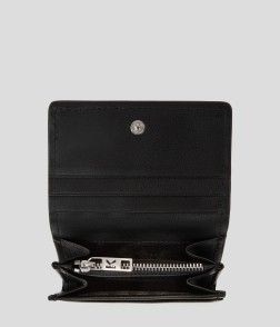 Une sublime broche en métal Ikonik Karl orne le devant de ce portefeuille plié classique. Ce modèle intemporel en cuir lisse dispose de plusieurs compartiments pour un rangement optimal des cartes et de la monnaie.