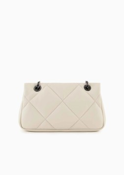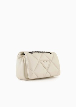 Sac mini à bandoulière en matière matelassée à effet nappa. Un modèle avec une bandoulière en chaîne conçu pour être porté tous les jours, doté d’un logo graphique distinctif en forme d’aigle qui se fond dans la matière, ce qui lui confère une image contemporaine mais toujours reconnaissable.