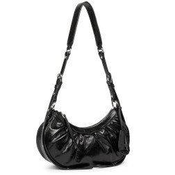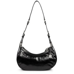 Ce petit sac demi lune est confectionné de cuir de vachette aspect vieilli. Il comporte une grande poche principale. Il se porte à l'épaule ou croisé.