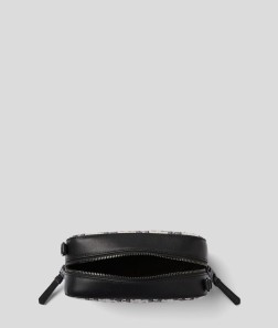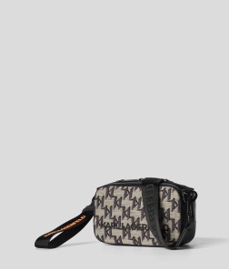Cette saison, le motif KL tissé façon all-over revisite le sac caméra classique à travers une version moderne.