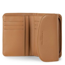 Portefeuille dos à dos à compartiments en cuir de vachette finition lisse.