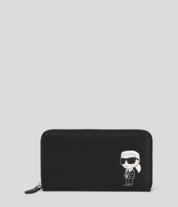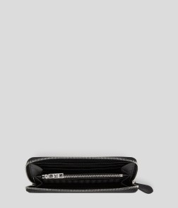 Doté de plusieurs fentes pour cartes et de compartiments, ce portefeuille continental spacieux est un accessoire indispensable pour ranger les essentiels du quotidien. Ce modèle zippé est confectionné en cuir lisse et arbore un motif Ikonik Karl revisité sur le devant.