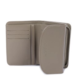 Portefeuille dos à dos à compartiments en cuir de vachette finition lisse.