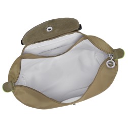 Inspiré par l'origami, Longchamp crée LE PLIAGE, un sac pliable et léger devenu culte dans le monde entier. La ligne Pliage Green adopte un style respectueux de l’environnement avec sa toile en polyamide recyclé, offrant ainsi une seconde vie plus noble aux matériaux la composant (Certification GRS 4.0). Le sac arbore des codes forts tels que la broderie cheval ainsi que des garnitures en cuir de Russie ton sur ton signature de la Maison. Le détail ultime : la teinture de tranche verte sur l’oreille qui rappelle l’utilisation de matériaux respectueux de l’environnement tout en faisant écho au vert lumière signature de la Maison, signe d’énergie, de fraîcheur et de dynamisme ! Une ligne engagée pour un look respectueux des ressources naturelles au quotidien.