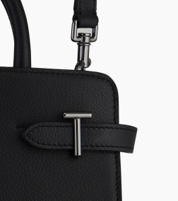 Sac à main moyen modèle avec poignées toron et trois compartiments dont un zippé. Pièces T métalliques signature de la ligne. Charms embossé Le Tanneur amovible. Porté main, épaule ou croisé grâce à sa bandoulière ajustable et amovible..