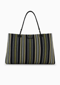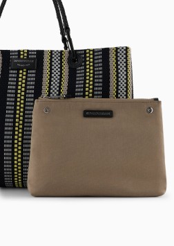 Sac cabas grand modèle en natté tressé. L’article est agrémenté de mousquetons ornés d’un logo, d’une étiquette en cuir assorti avec logo et d’une pochette intérieure avec fermeture zippée. Cet article appartient à la gamme MyEA, la proposition d’Emporio Armani de sacs emblématiques et exclusifs les plus représentatifs de la Maison. Choisissez le modèle et complétez-le avec les accessoires de la gamme qui vous ressemblent le plus.