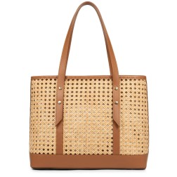 Ce sac cabas est confectionné de cannage rotin naturel garni cuir de vachette. Il possède une grande poche principale. Il se porte à l'épaule.