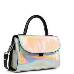 Ce sac à main est confectionné de synthétique. Il comporte une grande poche principale et une poche extérieure zippée. Il se porte à la main, croisé ou à l'épaule.