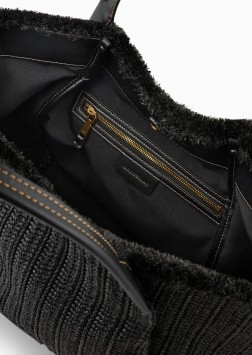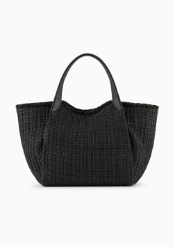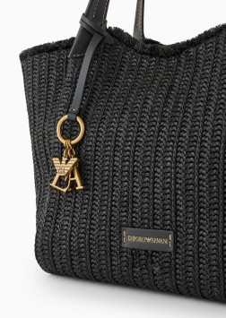 Sac à main à double poignée en paille tressée. Un nouveau modèle de sac de jour qui reflète le style élégant, sophistiqué, fonctionnel et chic de la femme Emporio Armani. Le design s’inspire d’un modèle historique, dont les proportions ont été adaptées à un contexte plus moderne et contemporain. Le sac est doté d’un bijou de sac en métal avec le logo EA et l’aigle.