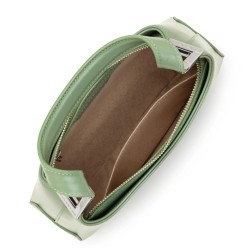 Ce petit sac baguette est confectionné de refente de cuir de vachette lisse. Il comporte une grande poche intérieure avec une chaîne métallique. Il se porte à la main, à l'épaule ou croisé.