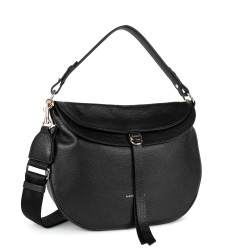 Ce grand sac besace est confectionné de cuir de vachette grainé. Il comporte une poche arrière extérieure zippée, une poche intérieure zippée ainsi qu'une double poche simple intérieur. Il se porte à l'épaule ou croisé.