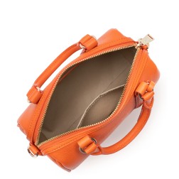 Ce petit sac polochon est confectionné de cuir de vachette grainé. Il possède une poche intérieure poche zippée, une poche intérieure simple ainsi qu'un porte-clefs. Il se porte à la main, à l'épaule ou croisé.