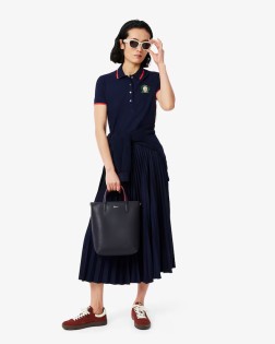 Réalisé en Petit Piqué, la matière iconique Lacoste, ce sac cabas revisite les codes de l’élégance. Format vertical moderne, texture grainée, bandoulière amovible contrastée et crocodile signature, les marqueurs Lacoste sont là. Ce modèle astucieux accueille les essentiels du quotidien, y compris un iPad dans son espace dédié.