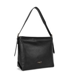 Ce sac seau est confectionné de cuir de vachette grainé. Il comporte une poche arrière extérieure zippée, une double poche intérieure simple ainsi qu'une poche intérieure zippée. Il se porte à l'épaule ou croisé.
