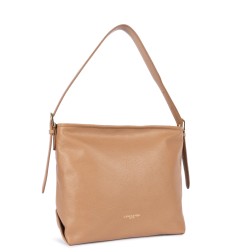 Ce sac seau est confectionné de cuir de vachette grainé. Il comporte une poche arrière extérieure zippée, une double poche intérieure simple ainsi qu'une poche intérieure zippée. Il se porte à l'épaule ou croisé.