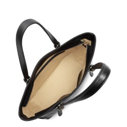 Ce sac cabas épaule est confectionné de cuir de vachette grainé. Il comporte une poche arrière extérieure zippée, une poche intérieure simple ainsi qu'une poche intérieure zippée. Il se porte à l'épaule.
