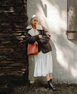 Alceste grand format, notre nouveau sac seau, au design à la fois élégant et audacieux, met en valeur un cuir pleine fleur au toucher naturellement doux et à la brillance subtilement satinée.