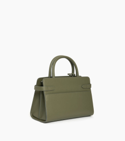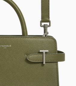Sac à main moyen modèle avec poignées toron et trois compartiments dont un zippé. Pièces T métalliques signature de la ligne. Charms embossé Le Tanneur amovible. Porté main, épaule ou croisé grâce à sa bandoulière ajustable et amovible..