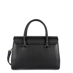 Ce petit sac à main est confectionné de cuir de vachette grainé. Il comporte deux poches intérieures zippées ainsi qu'une poche intérieure simple. Il se porte à la main, à l'épaule ou croisé.