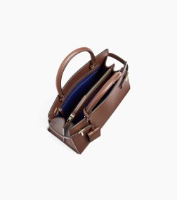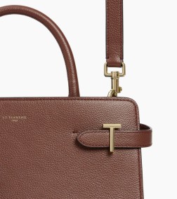 Sac à main moyen modèle avec poignées toron et trois compartiments dont un zippé. Pièces T métalliques signature de la ligne. Charms embossé Le Tanneur amovible. Porté main, épaule ou croisé grâce à sa bandoulière ajustable et amovible..