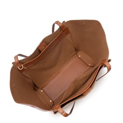 Ce très grand sac cabas épaule est confectionné de refente de cuir de vachette finition grainé. Il possède trois poches intérieures simple ainsi qu'une poche intérieure zippée. Grâce à des aimants discrets, les côtés du sac se replient pour offrir deux formes différentes : une version cabas ouverte ou une version plus structurée. Il se porte à l'épaule.
