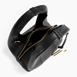 Ce petit sac à main souple, en cuir lisse et aux lignes sans découpe, arbore un charms T finition doré clair signature de la Maison. Il se porte à la main, à l'épaule ou croisé avec sa bandoulière amovible.