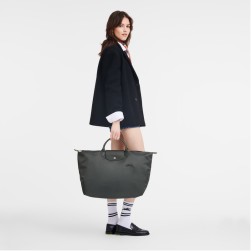 Sobre, discret et doté d'une fermeture zippée, ce sac de voyage transporte vos effets personnels en toute sécurité. Inspiré par l'origami, Longchamp crée LE PLIAGE, un sac pliable et léger devenu culte dans le monde entier. La ligne Pliage Green adopte un style respectueux de l’environnement avec sa toile en polyamide recyclé, offrant ainsi une seconde vie plus noble aux matériaux la composant (Certification GRS 4.0). Le sac arbore des codes forts tels que la broderie cheval ainsi que des garnitures en cuir de Russie ton sur ton signature de la Maison. Le détail ultime : la teinture de tranche verte sur l’oreille qui rappelle l’utilisation de matériaux respectueux de l’environnement tout en faisant écho au vert lumière signature de la Maison, signe d’énergie, de fraîcheur et de dynamisme ! Une ligne engagée pour un look respectueux des ressources naturelles au quotidien.