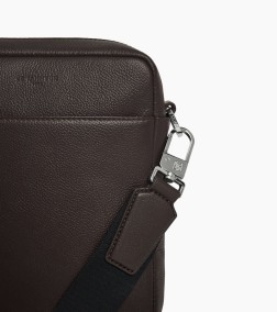 Petit sac bandoulière avec éléments métalliques gravés et marquage Le Tanneur ton sur ton. Doublure 100% coton bleu marine. Porté épaule ou croisé grâce à sa bandoulière ajustable et amovible.