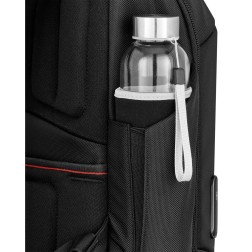 Passant qui permet de faire glisser le sac à dos sur la poignée télescopique d’un bagage à roulettes pour une plus grande maniabilité