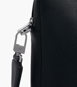 Porte-documents classique avec poche ordinateur 17", bouclerie gravée et marquage Le Tanneur ton sur ton. Doublure 100% coton bleu marine. Porté main, épaule ou croisé grâce à sa bandoulière ajustable et amovible.
